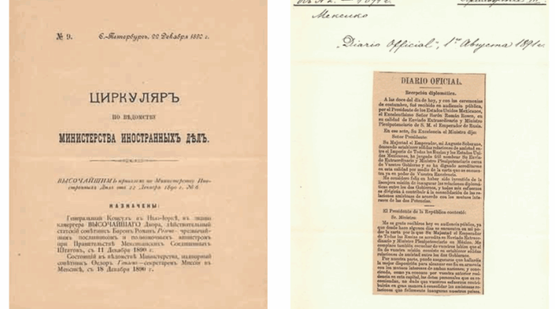 Fue así como el **11 de diciembre de 1890**, durante el segundo período presidencial de Díaz, se firmó el documento que estableció relaciones diplomáticas entre México y el **Imperio Ruso** de los Románov. El acuerdo fue suscrito por el ministro de Relaciones Exteriores mexicano, **Ignacio Mariscal**, y el primer enviado extraordinario ruso, el barón **Román Románovich Rosen**. Por México fue enviador el politico mexicano,Pedro Rincón-Gallardo y Ross