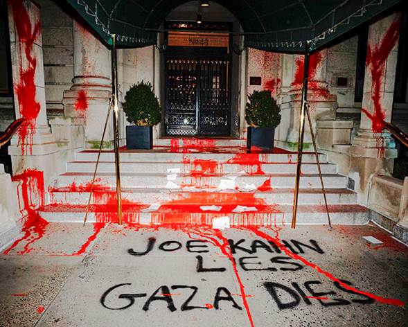 AN / NUEVA YORK, EU.-El edificio de Manhattan donde vive el editor ejecutivo del The New York Times (NYT) fue vandalizado en la madrugada del sábado con pintura roja y un mensaje que criticaba la cobertura del periódico sobre el ataque del 7 de octubre y el posterior asedio de Israel en la Franja de Gaza.