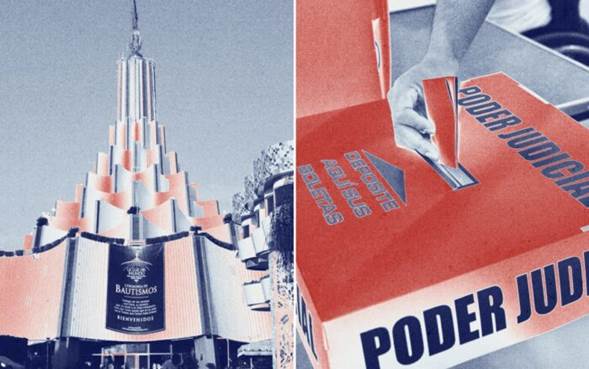 “Nosotros, en la pasada elección, como ciudadanos, como exmiembros, lo señalamos por ser ministro de culto y participar en la elección judicial. Llevamos documentos ante la presidenta, ante el Instituto Nacional Electoral, con Ernestina Godoy, a la directora de Asuntos Religiosos, donde le argumentábamos de alguna manera y le informábamos que este personaje era un ministro de culto.”