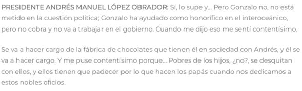 También menciona que Jorge Amílcar Olán Aparicio es uno de los mejores amigos de Gonzalo López Beltrán.