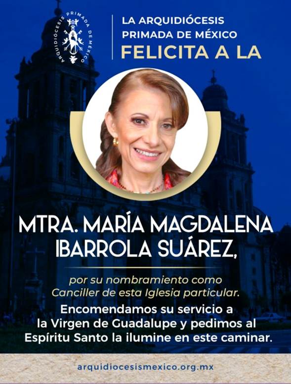 AN / MÉXICO.-La Arquidiócesis Primada de México anunció el nombramiento de la Maestra María Magdalena Ibarrola y Suárez como nueva canciller, convirtiéndose en la primera mujer laica en ocupar este cargo dentro de la historia de esta Iglesia particular.