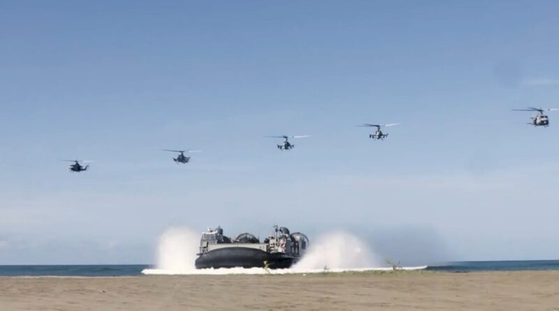 Integrantes de la Infantería de Marina entrenándose en las costas de Puerto Rico para un asalto anfibio.