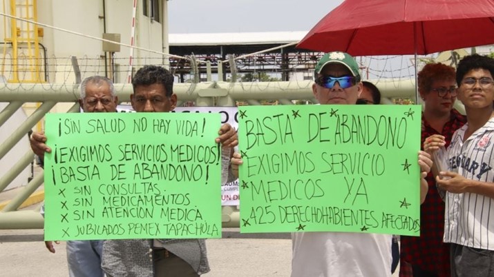 Trabajadores jubilados de Petróleos Mexicanos (Pemex) cerraron este jueves, de manera indefinida, una Terminal de Almacenamiento y Distribución (TAD) de la empresa en Tapachula, Chiapas, en protesta por la falta de servicios médicos desde hace un año, lo que ha provocado desabasto de combustible en los 16 municipios de la frontera con Guatemala.