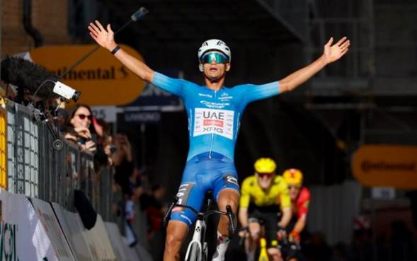No pudo acabar la machada Abrahamsen, neutralizado por los velocistas a escasos metros del final. Filippo Ganna (Ineos) intentó lanzar la volata, pero fue Milan, especialista en llegadas que no había brillado hasta ahora, remató la faena con un gran esprint. Del Toro, poco después, escoltado por sus compañeros del UAE, celebró la gran victoria de su carrera.