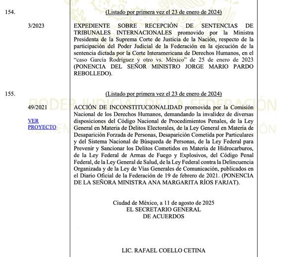 Por lo anterior, corresponderá a los nueve ministros ganadores de la elección judicial, cercanos al gobierno de Claudia Sheinbaum, resolver los dos expedientes que proponían cambiar la prisión preventiva oficiosa por prisión justificada, obligando a los ministerios públicos a presentar pruebas para que una persona pueda ser privada de su libertad desde la primera audiencia en lugar de imponer la prisión automática.