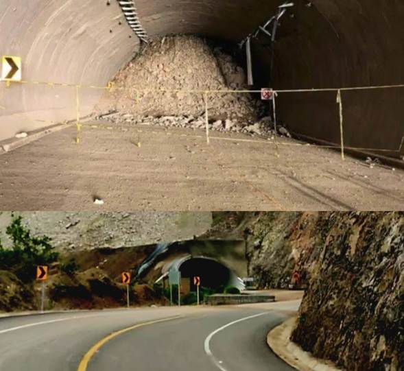 La comunicación oficial destaca que el túnel “El Tornillo” fue un logro, ya que se trata de una zona de deslaves: