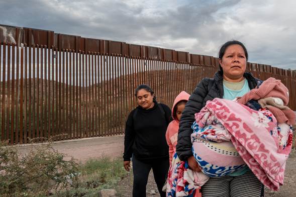 Migrante mexicana junto a su hijo en la frontera con EU, 25 de junio de 2024. Brandon Bell / Gettyimages.ru