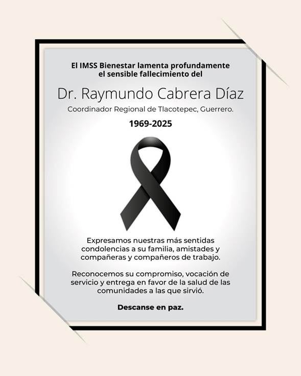 AN / GUERRERO.-El Instituto Mexicano del Seguro Social (IMSS) en Guerrero confirmó este lunes el fallecimiento del doctor Raymundo Cabrera Díaz, quien se desempeñaba como coordinador regional del programa del IMSS-Bienestar y que fue asesinado a tiros en el municipio de Chilpancingo, capital de la entidad.
