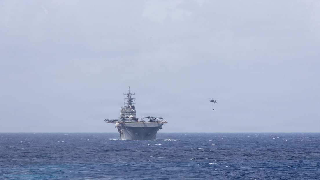 El buque de asalto anfibio Wasp USS Iwo Jima realiza un reabastecimiento en el mar con el buque cisterna de reabastecimiento Henry J. Kaiser USNS Joshua Humphreys mientras navega por el mar Caribe, el 21 de octubre de 2025. Brett Norman / Marina de EU. / Gettyimages.ru