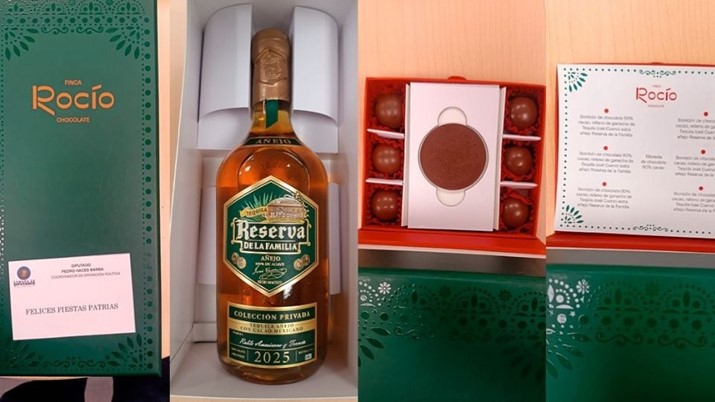 Los arcones, de la marca «Finca Rocío», comenzaron a entregarse el 9 de septiembre directamente en las oficinas de los diputados, acompañados de una tarjeta con una dedicatoria de Haces Barba, también dirigente sindical. Cada caja decorada con los colores patrios incluye una botella de tequila exclusivo de la destilería más antigua de América Latina, seis bombones de chocolate rellenos de ganache de tequila “extra añejo reserva de la familia” y una moneda de chocolate con el escudo nacional grabado.