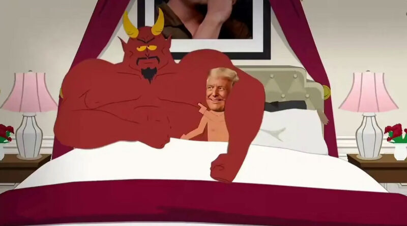 En una de las escenas más polémicas, Trump aparece en la Casa Blanca desvestido y acurrucándose con Satanás en su cama, quien le recrimina: «Es raro que cada vez que sale el tema de la lista de Epstein, le digas a todo el mundo que se relaje».