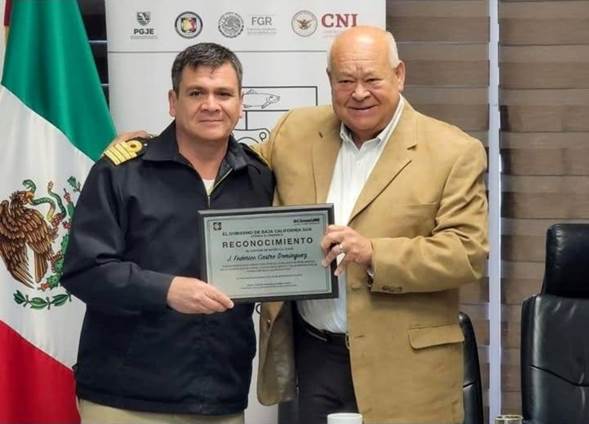 Foto: El Capitán de Navío, Federico Castro Domínguez, con el Gobernador de Baja California Sur, Víctor Castro.
