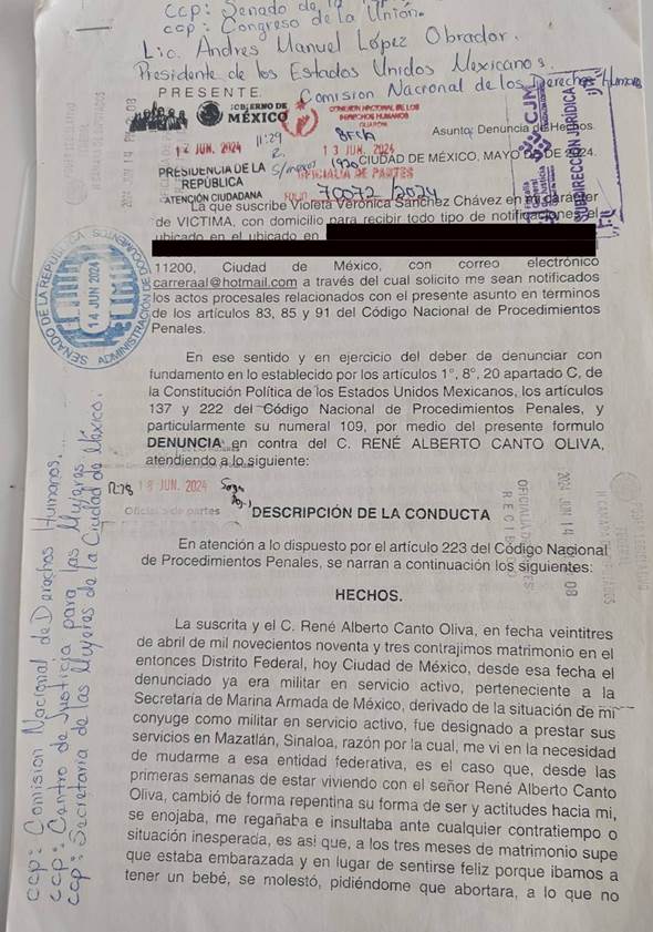 AN / MÉXICO.-Violeta Verónica Sánchez Chávez, quien estuvo casada durante 31 años con el vicealmirante René Alberto Canto Oliva, excomandante de la Décima Sexta Zona Naval, habló sobre la relación de su exesposo con el capitán retirado Miguel Ángel Solano, alias “Mike” o “El Sol”, actualmente prófugo y señalado de formar parte de una presunta red de huachicol fiscal con la participación de empresarios, marinos y funcionarios de aduanas.