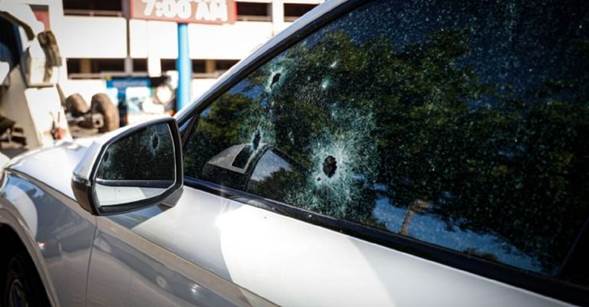 Las huellas de los impactos de bala quedaron marcadas principalmente los costados de la unidad, tanto en el lado del conductor como en el del copiloto.