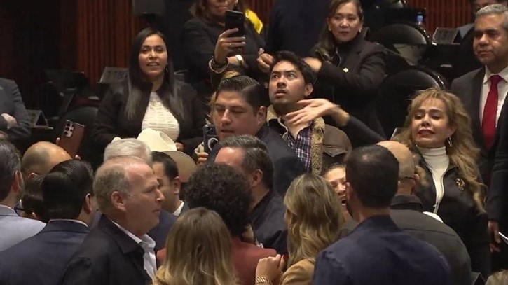 LATINUS / MÉXICO.-Elementos de resguardo y seguridad de la Cámara de Diputados han ingresado al salón de sesiones para intervenir en favor de legisladores de la llamada Cuarta Transformación, a pesar de que el reglamento interno prohíbe su presencia en el pleno.
