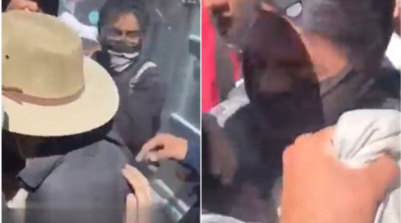 La mujer, visiblemente afectada, fue tomada en brazos a la vez que algunos de los presentes aún intentaban agredirla. Sin embargo, los manifestantes lograron retirarla del lugar.
