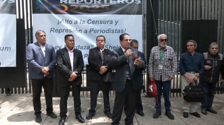 LATINUS / CDMX.-Un grupo de periodistas realizaron una concentración afuera del Senado de la República para expresar su rechazo a casos de censura contra comunicadores como Héctor de Mauleón y al exdirector del diario Tribuna de Campeche, Jorge Luis González, así como por la aprobación de leyes que limitan la libertad de expresión.