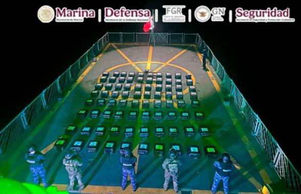 - En operativo marítimo, la Armada de México asegura dos toneladas de cocaína a 200 millas de Acapulco; el cargamento será puesto a disposición ministerial. De acuerdo con el comunicado oficial, el personal naval desplegó aeronaves, una patrulla oceánica y una embarcación menor para localizar los bultos.