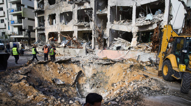 Lugar donde cayó un misil iraní en Tel Aviv, el 1 de marzo de 2026. Oded Balilty / AP
