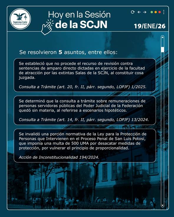 Durante el debate del lunes 19 de enero, la Corte estableció que no procede la revisión de sentencias definidas por las salas de la antigua Suprema Corte.