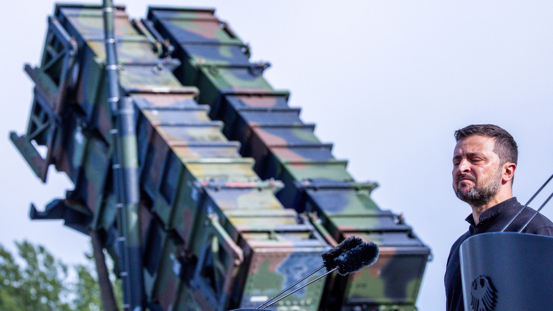 El líder del régimen ucraniano, Vladímir Zelenski, ante un sistema de defensa aérea Patriot en Mecklemburgo-Pomerania Occidental, Alemania, el 11 de junio de 2024. Jens Büttner / picture alliance / Gettyimages.ru