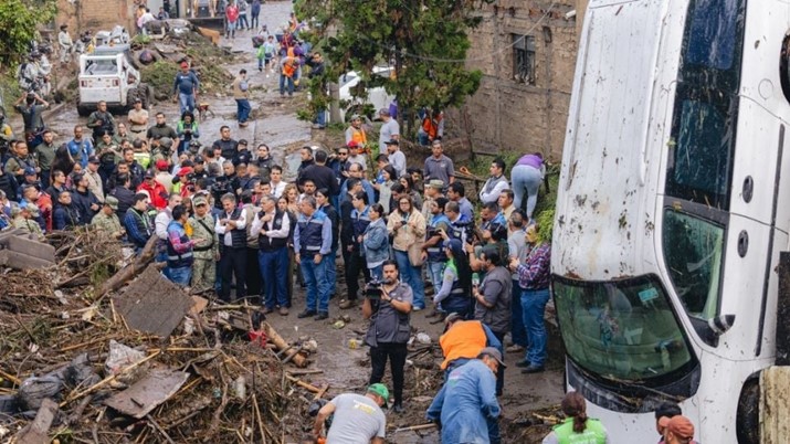 Personal de protección civil y bomberos, así como también del ejército mexicano, la Guardia Nacional y policía municipal, se encuentran en la zona para auxiliar a los afectados.
