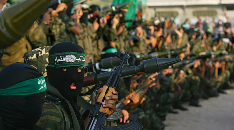 Militantes palestinos enmascarados del ala militar del movimiento Hamás participan en las celebraciones por la retirada israelí de Gaza, el 24 de agosto de 2005.Abid Katib / Gettyimages.ru