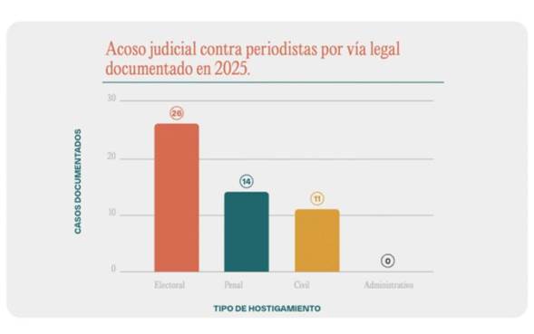 La organización explicó que este fenómeno representa un cambio en la forma de violencia contra la prensa, pues “ya no se limita a agresiones físicas o amenazas: ahora se traslada a los tribunales mediante demandas, denuncias y procedimientos administrativos o electorales”.