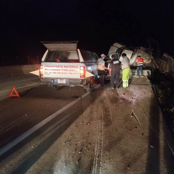 AN / YUCATAN.-Autoridades de Yucatán atendieron la volcadura de un camión que transportaba material explosivo en el kilómetro 206 de la autopista Mérida-Cancún, donde la circulación permanece cerrada y bajo protocolos de seguridad.
