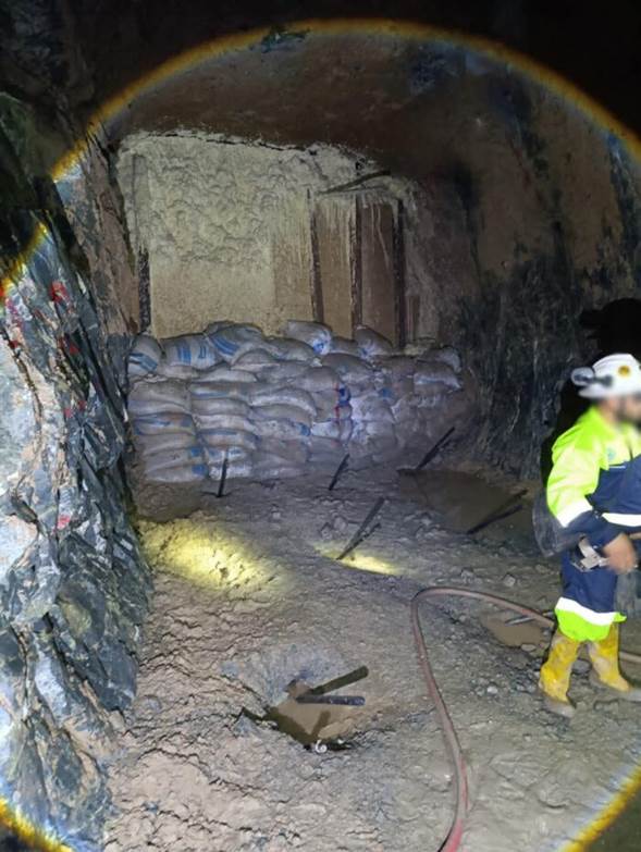 Además, los equipos han removido material en un tramo aproximado de 130 metros y han habilitado rutas internas mediante madera, costales y señalización, facilitando la movilidad dentro de los túneles.