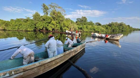 También indicó que han recolectado unos 240 kilogramos de residuos impregnados con hidrocarburo, mediante la instalación de barreras de contención para evitar la dispersión del contaminante hacia cuerpos de agua cercanos.
