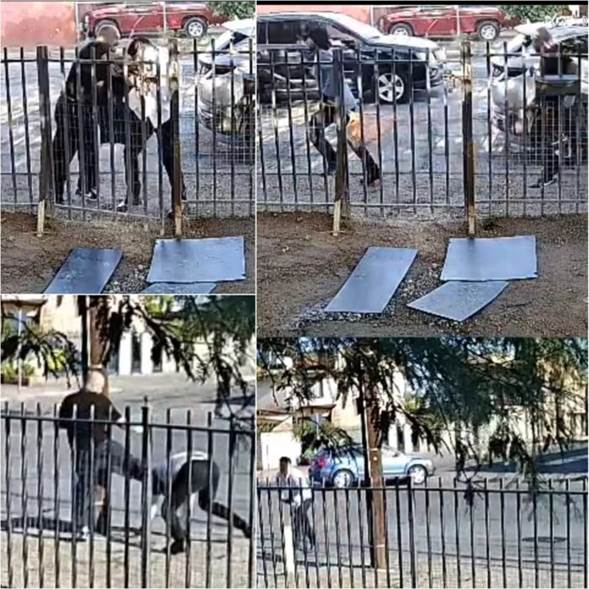Tras la negativa, ambos le preguntan si les regala un vaso de agua, pero al no escuchar se acerca y comenzaron a golpearlo en la cara.