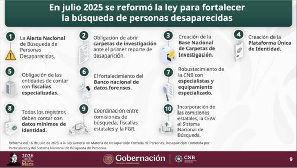 - Marcela Figueroa señaló que la falta de información en algunos reportes responde a antes de la reforma en materia de desaparición de 2025. el SESNSP indicó que se han identificado coincidencias en bases de datos institucionales.
