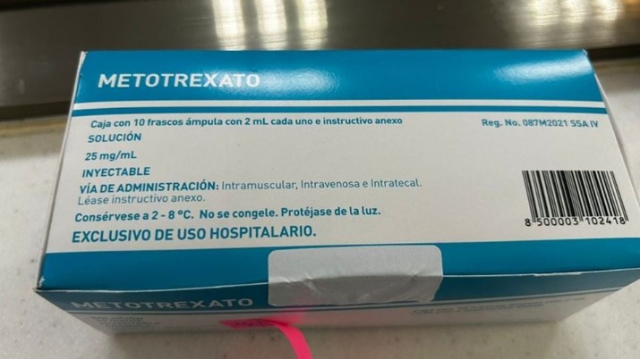 Asimismo, la asociación civil difundió los datos del registro sanitario de dicho medicamento. De acuerdo con información oficial, el Metotrexato es utilizado para el tratamiento contra algunos tipos cáncer.