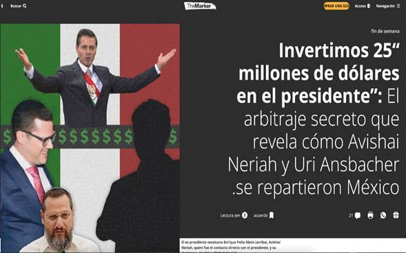El artículo lleva un título más que sugerente: “Invertimos 25 millones de dólares en el presidente: El arbitraje secreto que revela cómo Avishai Neriah y Uri Ansbacher se repartieron México”.
