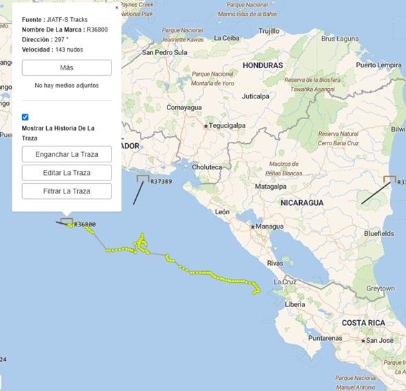 Bukele compartió un mapa de la supuesta trayectoria de vuelo del avión, que lo mostraba apareciendo frente a la costa de Costa Rica, al sur de El Salvador, antes de dirigirse hacia el norte a través del Pacífico.