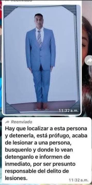 “Hay que localizar a esta persona y detenerla. Está prófugo, acaba de lesionar a alguien, búsquenlo y donde lo vean, deténganlo e informen de inmediato, por ser presunto responsable del delito de lesiones.”