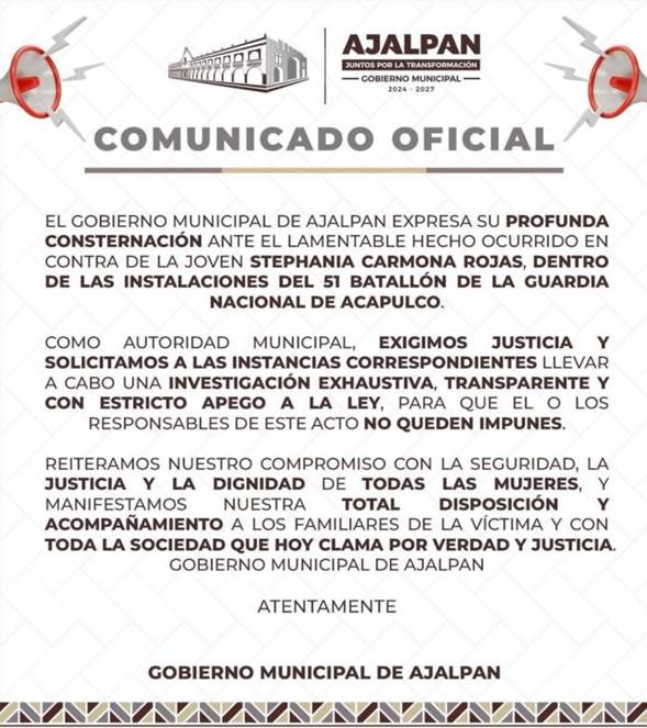 Hasta el momento, la Guardia Nacional no ha emitido algún pronunciamiento oficial. Por su parte, el Ayuntamiento de Ajalpan exigió justicia, respaldando la exigencia de la familia para que se investigue el caso a fondo.
