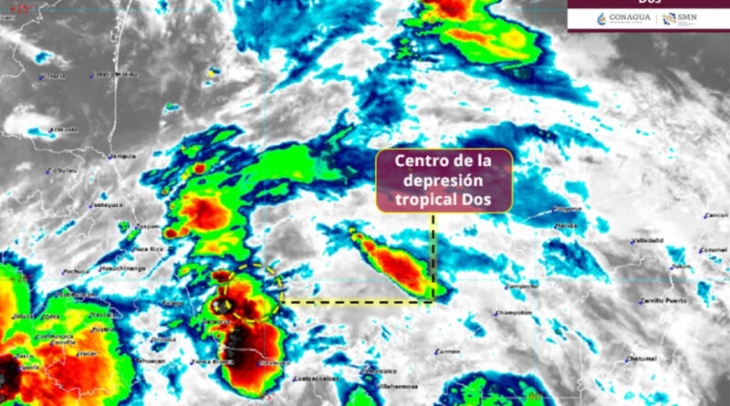 AN / MÉXICO.-El Servicio Meteorológico Nacional (SMN) informó sobre la formación de la Depresión Tropical Dos, la cual provocará intensas lluvias, vientos fuertes y oleaje elevado en los estados de Veracruz, Tabasco y Campeche durante este fin de semana.
