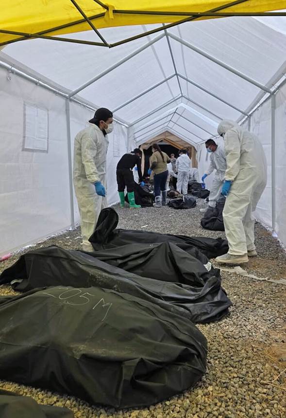 Entre los 383 cuerpos se identificaron 218 masculinos, 149 femeninos y 16 indeterminado, según Sánchez Herrera, quien añadió que en varios casos se hallaron etiquetas hospitalarias con nombre y número de seguridad social.