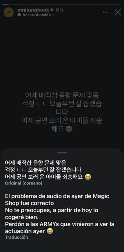 Por su parte, Jungkook lamentó la situación a través de su cuenta de Instagram y pidió disculpas ante los inconvenientes.