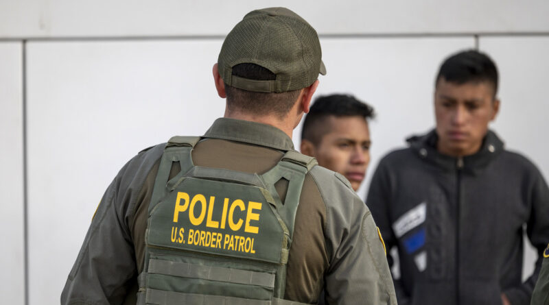Agente de la Patrulla Fronteriza de EU con inmigrantes en la frontera con México, el 7 de enero de 2024. John Moore / Gettyimages.ru