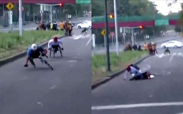 Abordó directamente el incidente que sufrieron dos atletas en silla de ruedas, al caer de sus vehículos a la altura del kilómetro veinte de la ruta. Los afectados fueron el colombiano Francisco Sanclemente, quien lideraba la prueba, y el mexicano Gonzalo Valdovinos, que venía detrás de él.