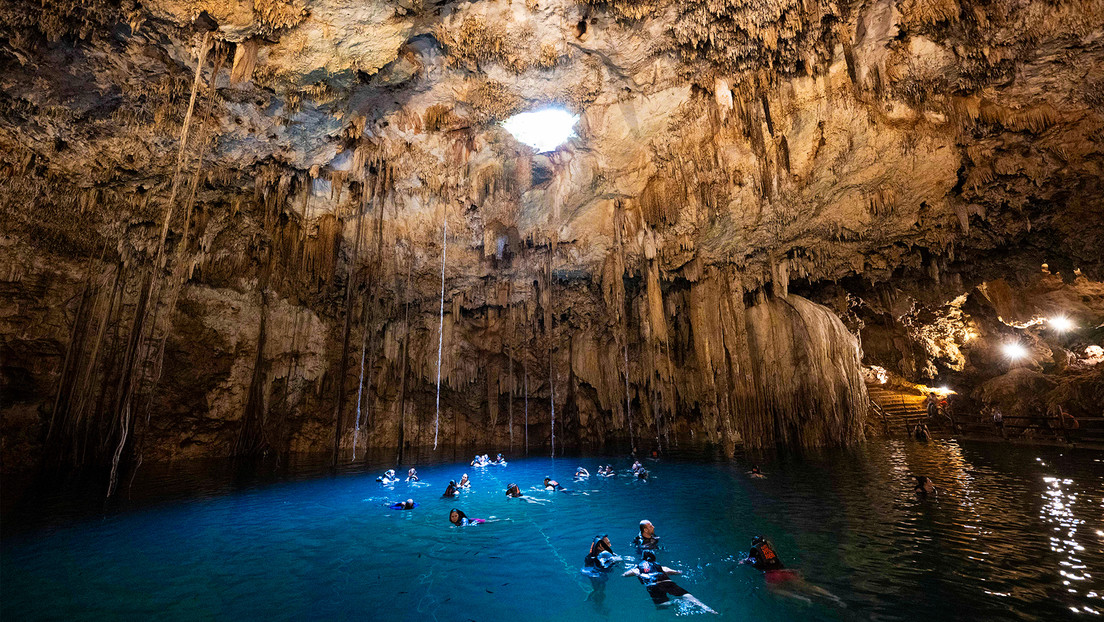 Turistas nadan en el agua del cenote Xkekén, Valladolid (México), el 19 de noviembre de 2024. Sebastian Kahnert / Gettyimages.ru