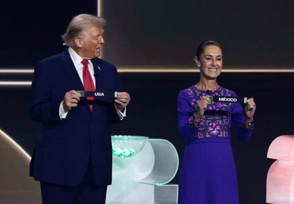 La presidenta coincidió horas antes con Trump y con Carney durante la ceremonia del sorteo del Mundial que se celebró en el Centro Kennedy de Washington. Estados Unidos, México y Canadá son los anfitriones del torneo.