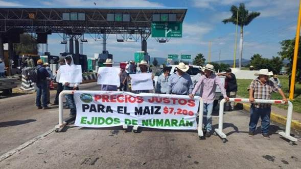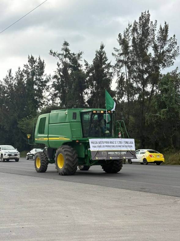 Los manifestantes exigen un precio justo para las cosechas, mayor inversión en tecnología y programas de apoyo, así como la exclusión de los granos básicos del Tratado de Libre Comercio (T-MEC).