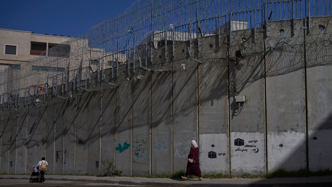 Palestinos caminan a lo largo de la barrera de separación entre Cisjordania y el barrio de Beit Hanina, en Jerusalén Este, 15 de febrero de 2026. Ohad Zwigenberg / AP