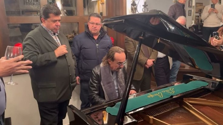 El morenista presumió sus dotes de artista mientras interpretaba algunas melodías con el pianista argentino, en un ambiente de exclusividad y con atenciones personalizadas.